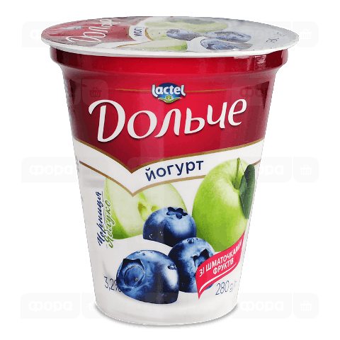 Йогурт «Дольче» з наповнювачем чорниця і яблуко 3,2%, стакан