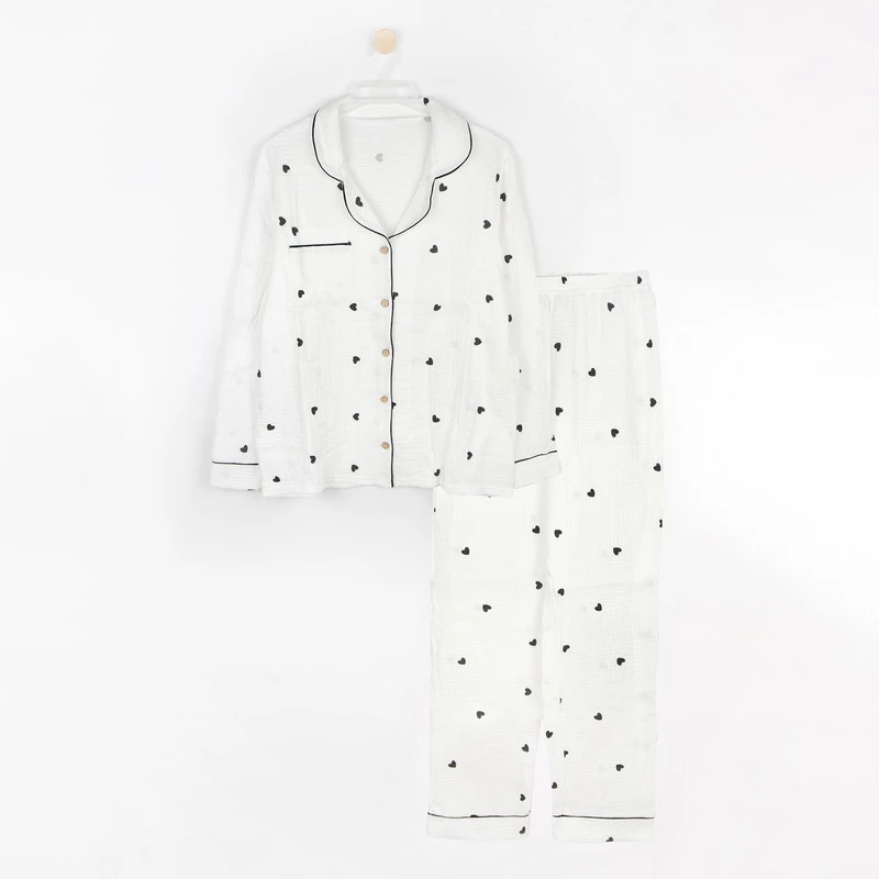 Жіноча піжама Dexters d416: сорочка та штани, чорні серця на білому, розмір S